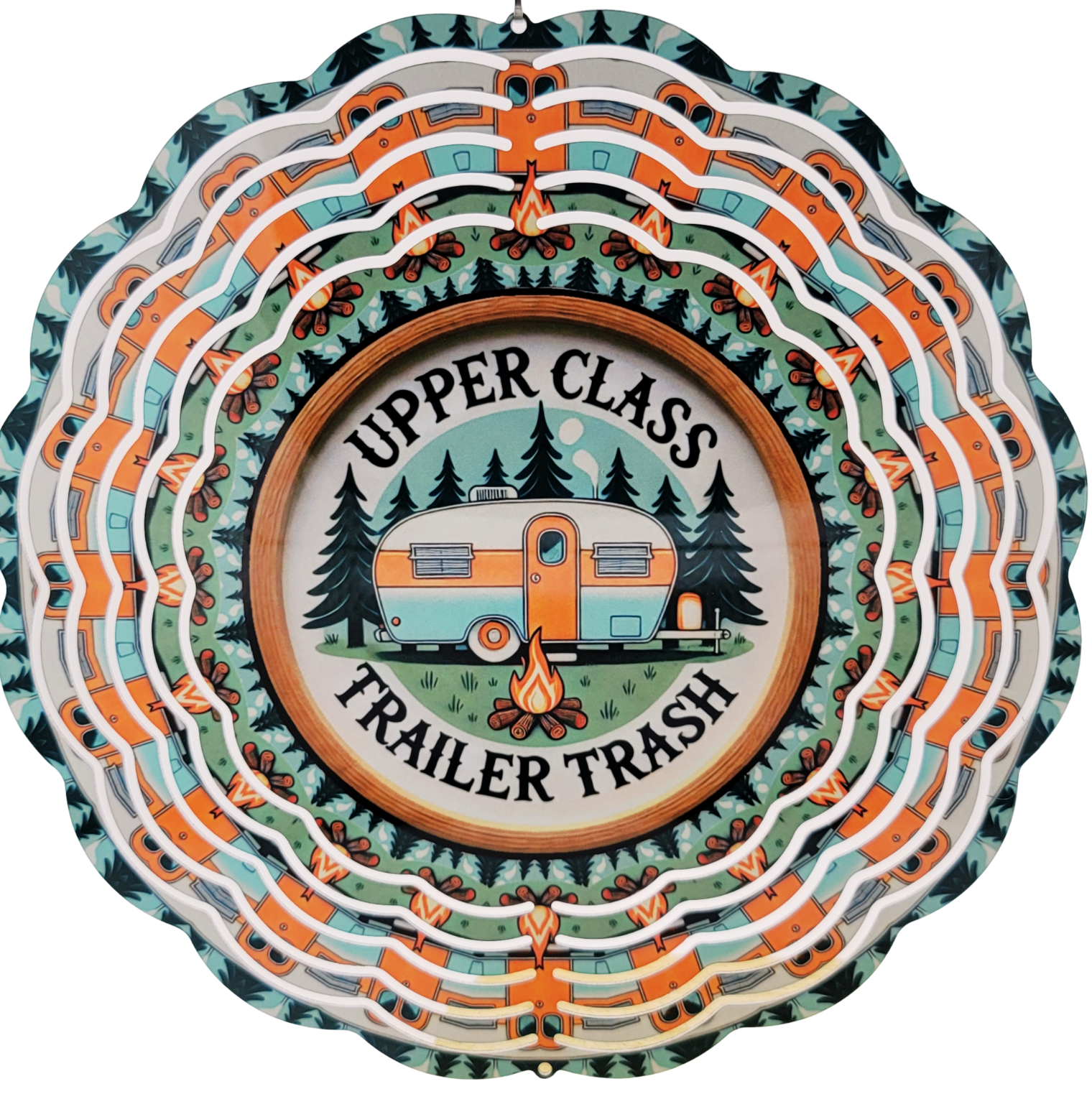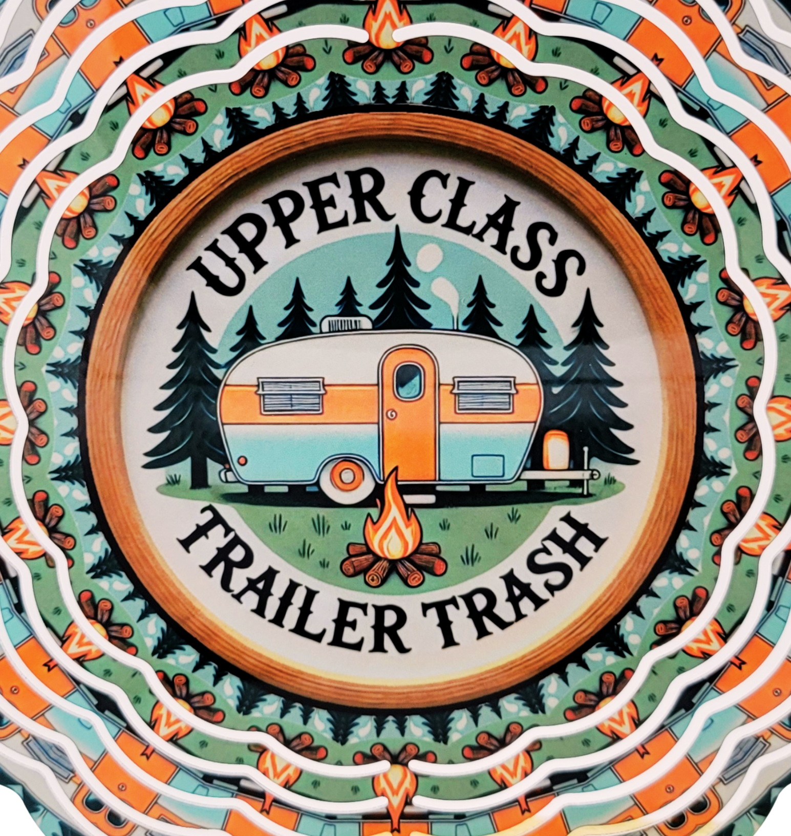 Looking to infuse some personality into your outdoor decor? This whimsical wind spinner humorously declares ‘UPPER CLASS TRAILER TRASH,’ making it an entertaining and quirky addition. It’s perfect for those who appreciate light-hearted humor and enjoy making bold design statements. Let this wind spinner be more than just décor—it’s a conversation starter!